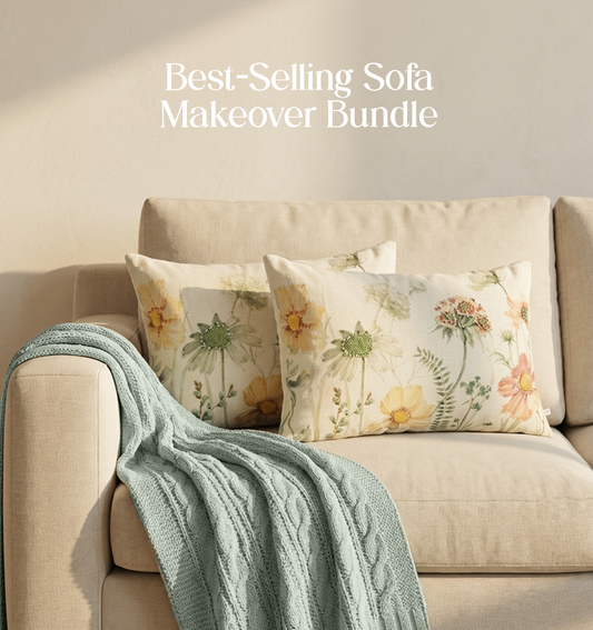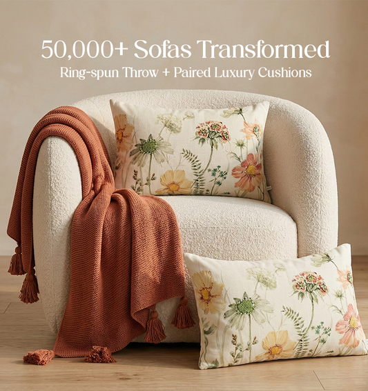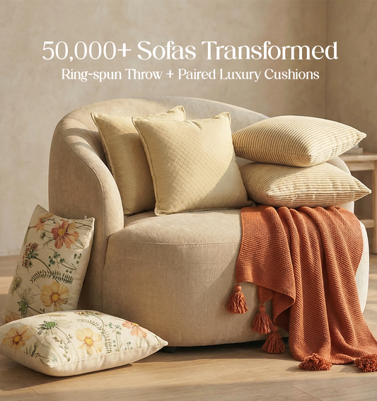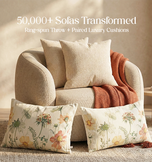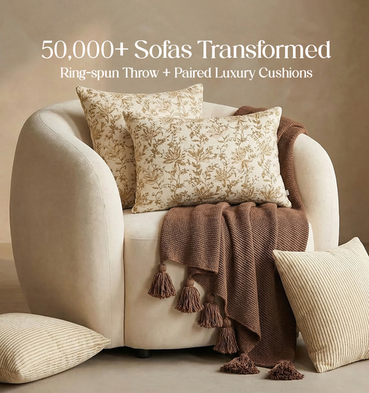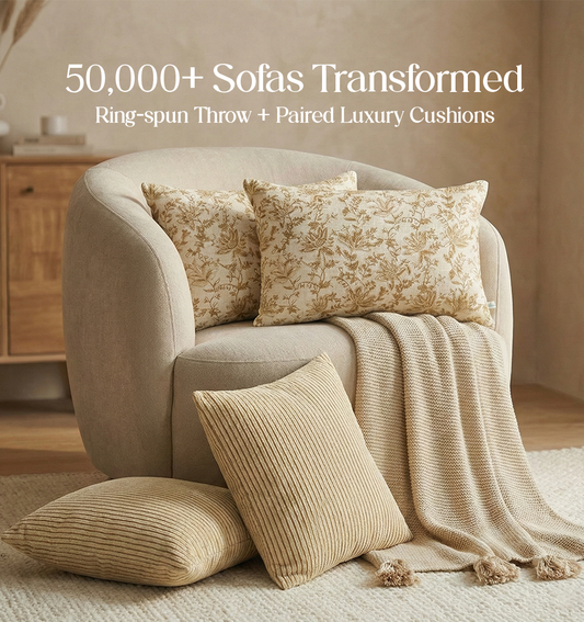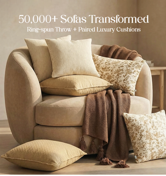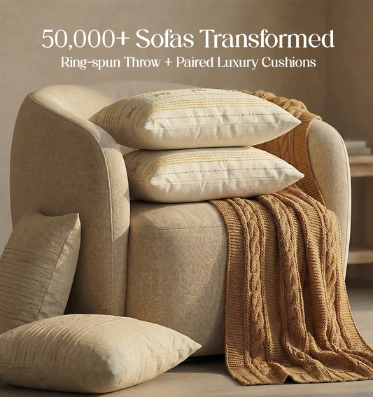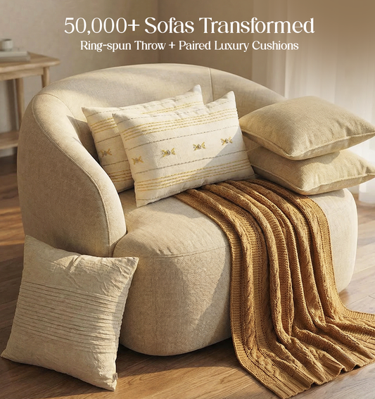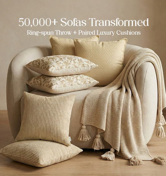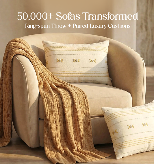 Luxury Sofa Makeover Set | Desert Sun Knitted Sofa Throw paired with Cushions - Set of 6