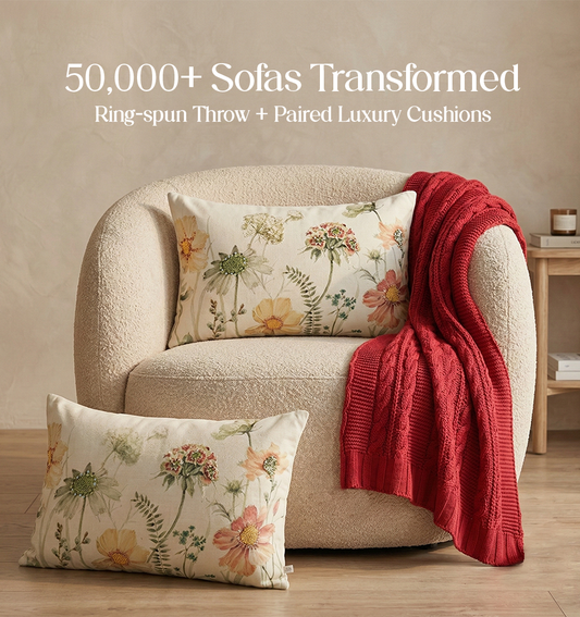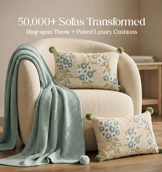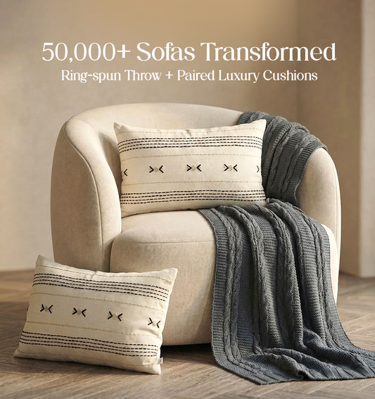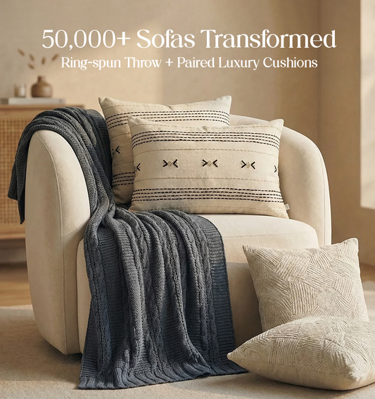 Luxury Sofa Makeover Set | Ivory Cloud Knitted Sofa Throw paired with Cushions - Set of 2