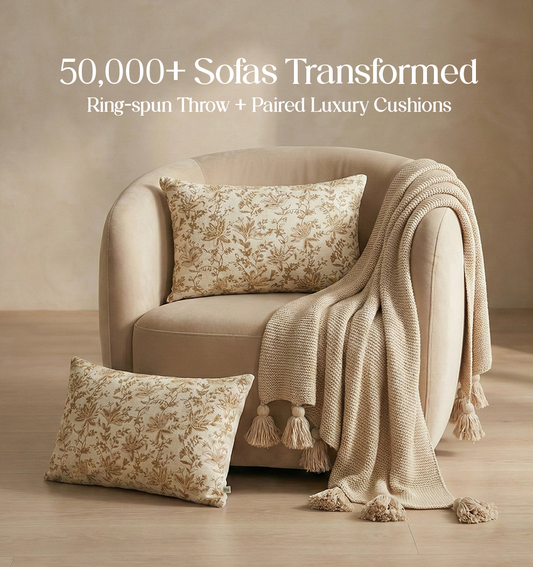 Luxury Sofa Makeover Set | Desert Sun Knitted Sofa Throw paired with Cushions - Set of 2