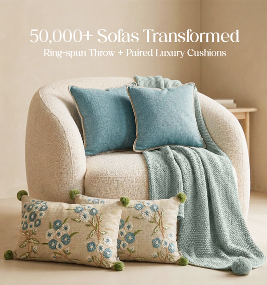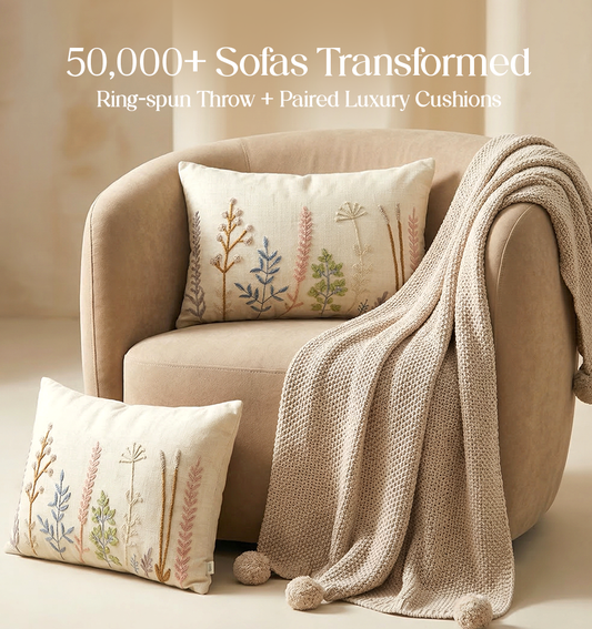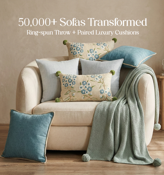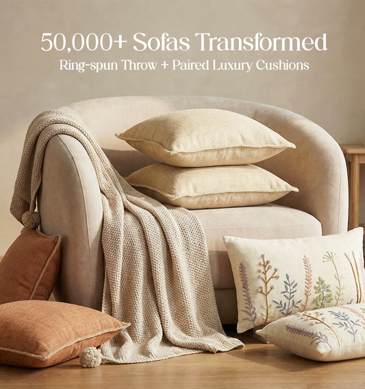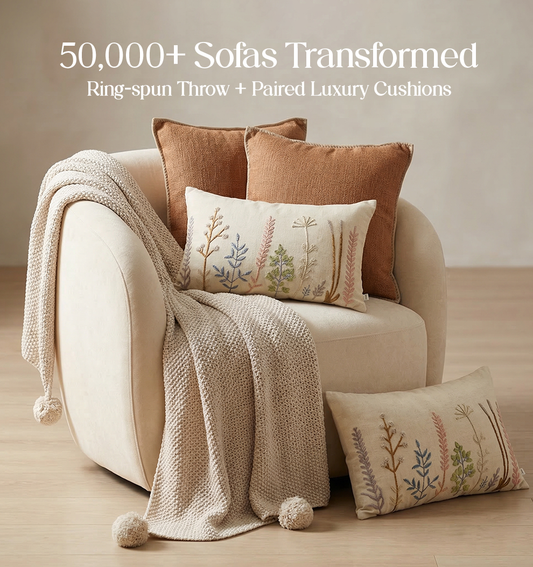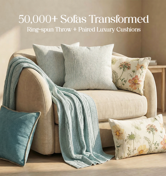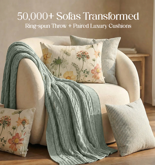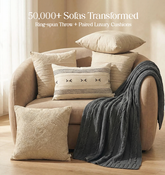 Luxury Sofa Makeover Set | Ivory Cloud Knitted Sofa Throw paired with Cushions - Set of 6