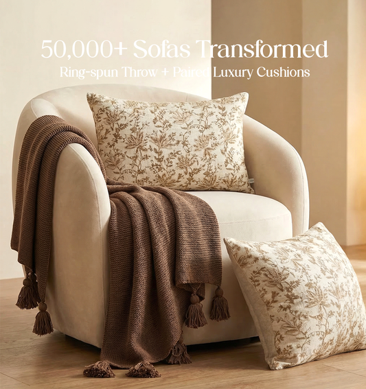 Luxury Sofa Makeover Set | Deep Chestnut Knitted Sofa Throw paired with Cushions - Set of 6