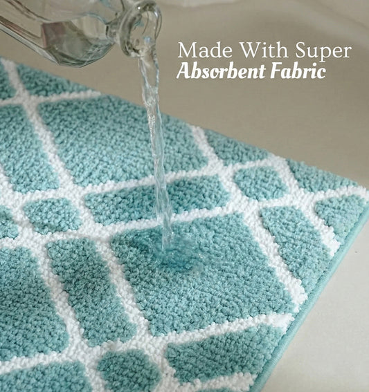 Knitted Geo Diamond Foam Padded Bathmat - Icy Teal