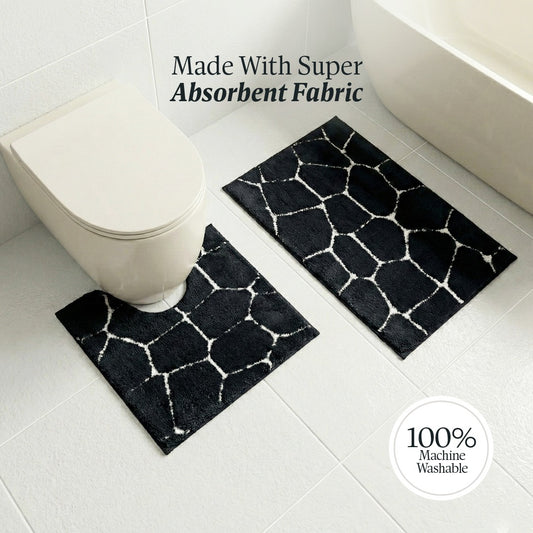 Knitted Geo Luxe Foam Padded Bathmat - Obsidian Noir