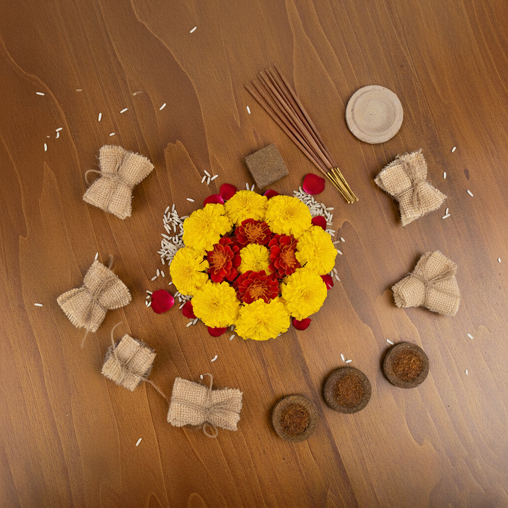 Natural herbs, turmeric, sandalwood, and kumkum- chemical-free, sattvic offerings that preserve the sanctity of every ritual.