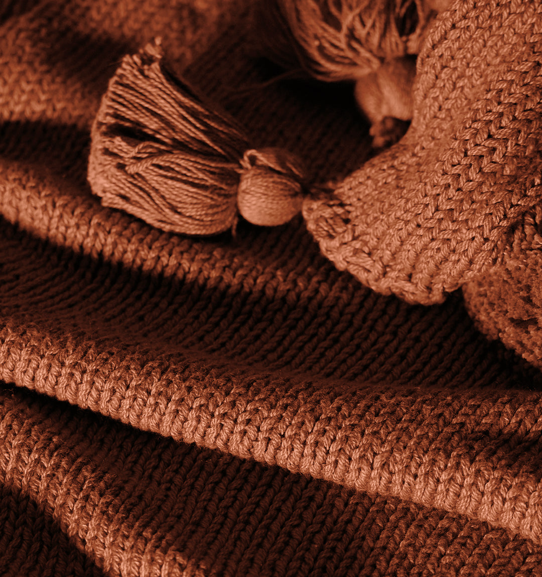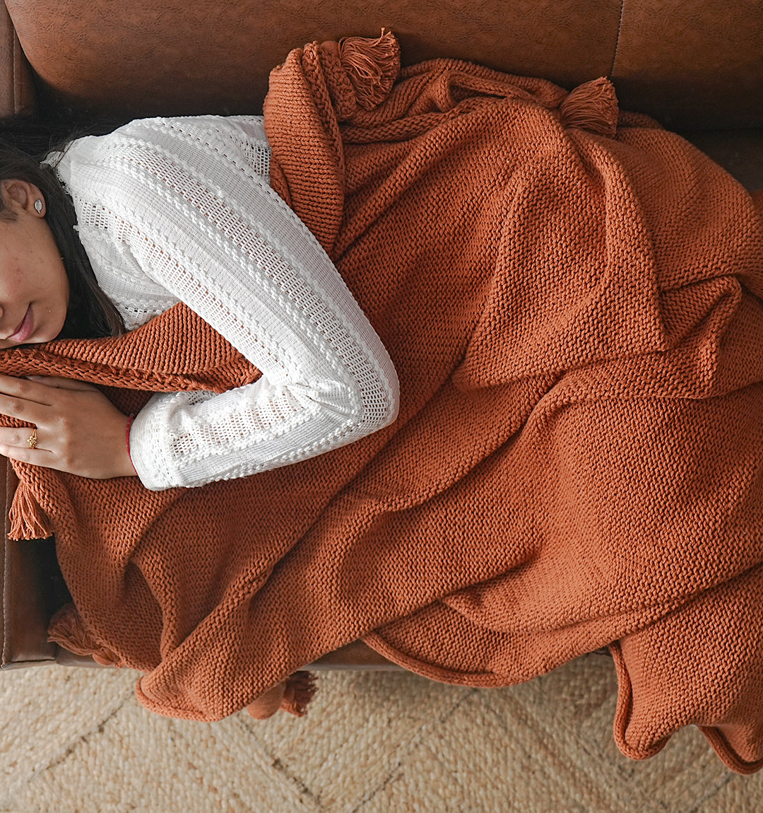 Paudha’s Exquisite All-Season Stripped Breathable 100% Cotton Knitted Sofa Throw - Cinnamon Blaze