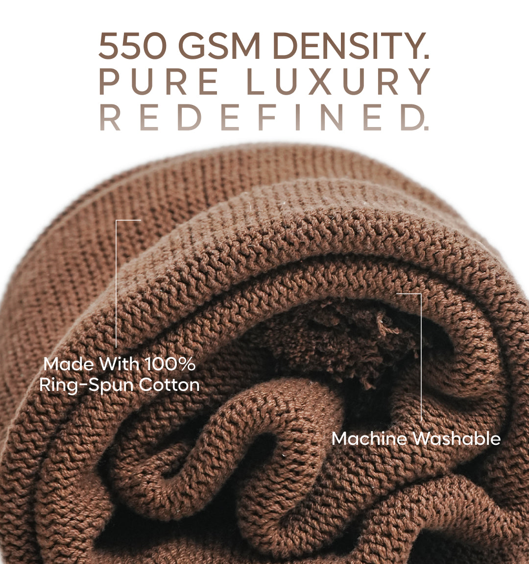 -The Cozy Stripe Knit Luxe Sofa Blanket is your ultimate comfort essential. Made with high 550 GSM, 100% ring-spun cotton, it offers luxurious softness, exceptional durability, and optimal temperature regulation—keeping you cozy in winter and cool in summer. Machine washable and easy to care for, it's perfect for every relaxing moment