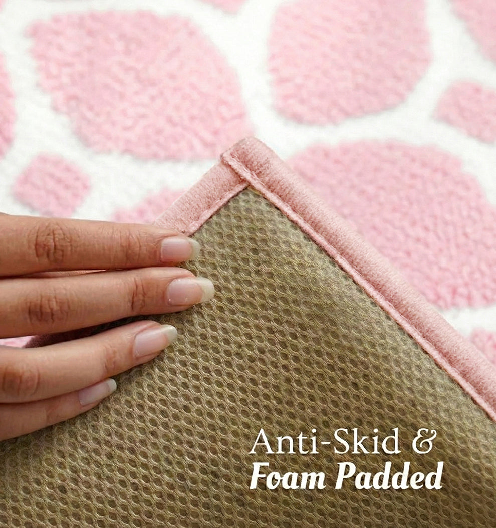 Anti-skid backing (Place ONLY on dry tiles)—ensures your bathmat stays firmly in place