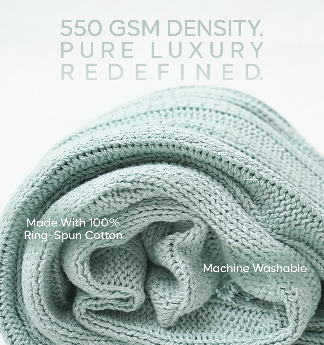 Paudha’s Exquisite All-Season Textured Threadwork High Low Cotton Breathable Knitted Sofa Throw - Glacial Blue